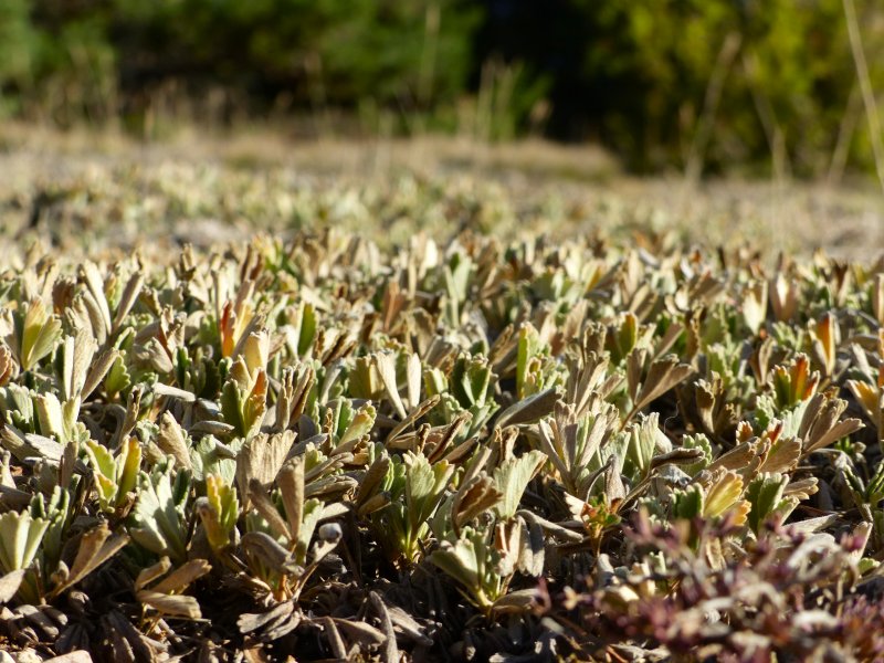 El nombre científico es Potentilla cinerea y pertenece a la familia de las Rosáceas. Es una pequeña mata rastrera que, a partir de una cepa leñosa, produce unos brotes de los que nacen unas hojas divididas en varios foliolos que están tan cubiertos de pelos que le dan un aspecto blanquecino a la planta.