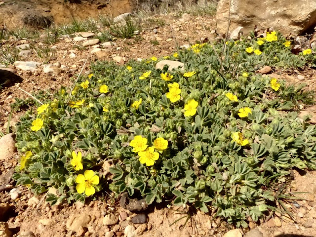 Estos días de mayo, la primavera estalla hasta en las lomas y en los cabezos pedregosos gracias a la Potentilla cinerea.