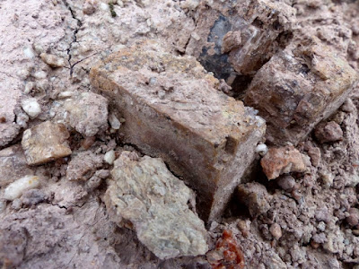 Eran unos cristales más grandes, de varios centímetros. También eran regulares, los más con hábito de romboedro. Tenían el color de la arcillas entre las que aparecían. De hecho no tenían brillo. Entonces pensé que por estar finamente cubiertos por arcilla. En casa ya, tras la limpieza de la superficie de los mismos, vi que no era así. No eran cristales traslúcidos.