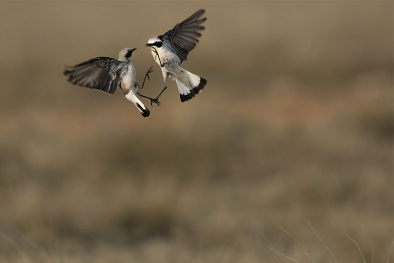 | Pareja de machos de rebalba compitiendo por su territorio de cría al inicio de primavera. Foto: Carlos Pérez Naval |