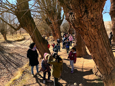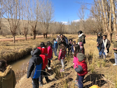 Y por los huertos. Allí vimos las acequias, estrechos caminos para llevar el agua hasta los campos. Recordando la diferencia entre agricultura de secano y de regadío. Hay mucho conocimiento en las personas mayores en aprovechar bien el agua. Forma parte del saber popular que se transmite de padres a hijos. Es un patrimonio cultural.