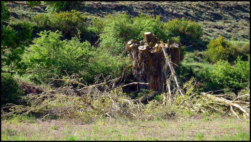 | Chopo cabecero recién podado en Los Collados (Aguilar del Alfambra) |