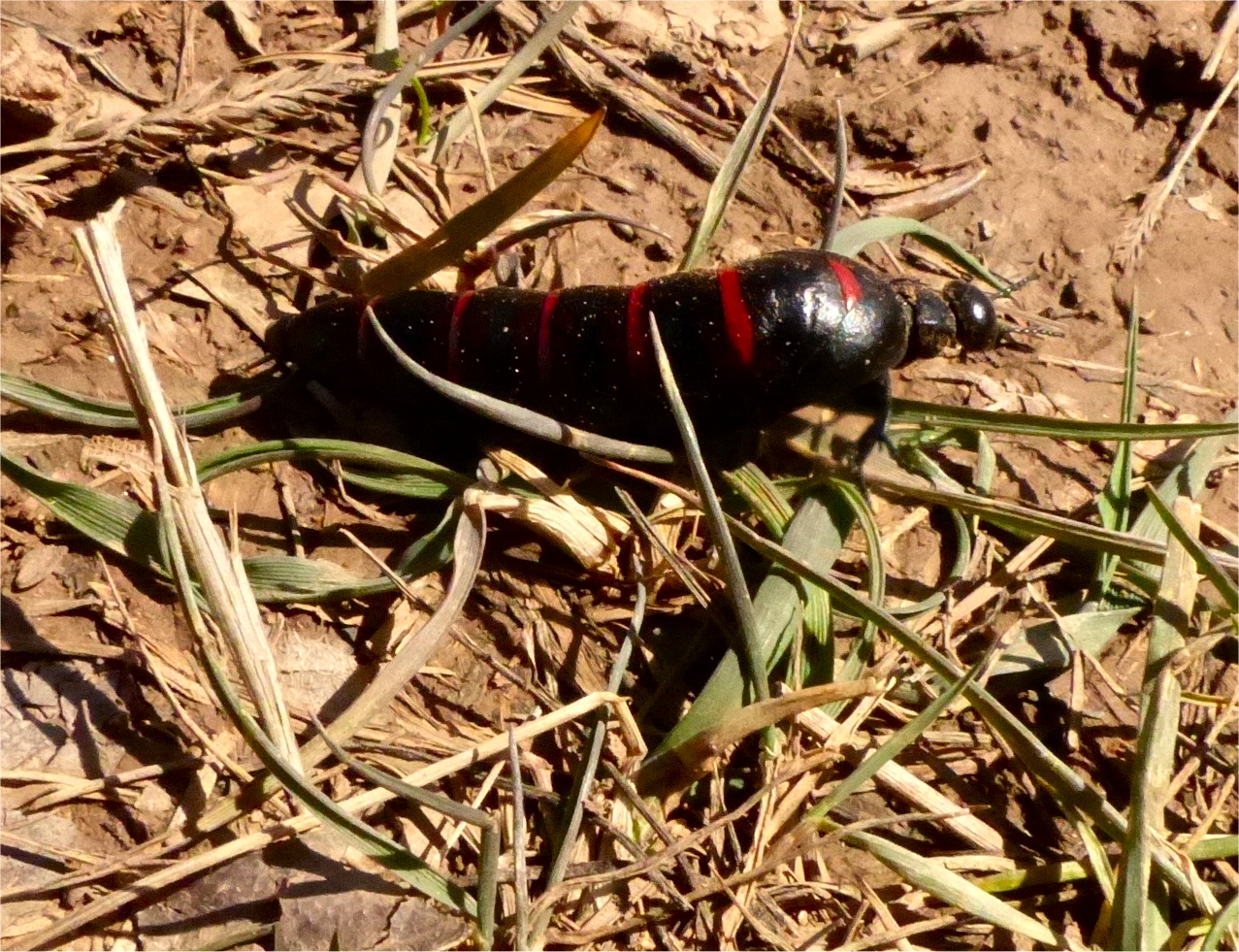 Entre estas hierbas abunda una especie de escarabajo de pequeñas alas (élitros) y de un largo abdomen. Es realmente grande, uno de los más grandes de Europa. El esqueleto externo es de color negro pero presenta unas rayas rojas en los segmentos del abdomen. Es la aceitera (Berberomeloe majalis).