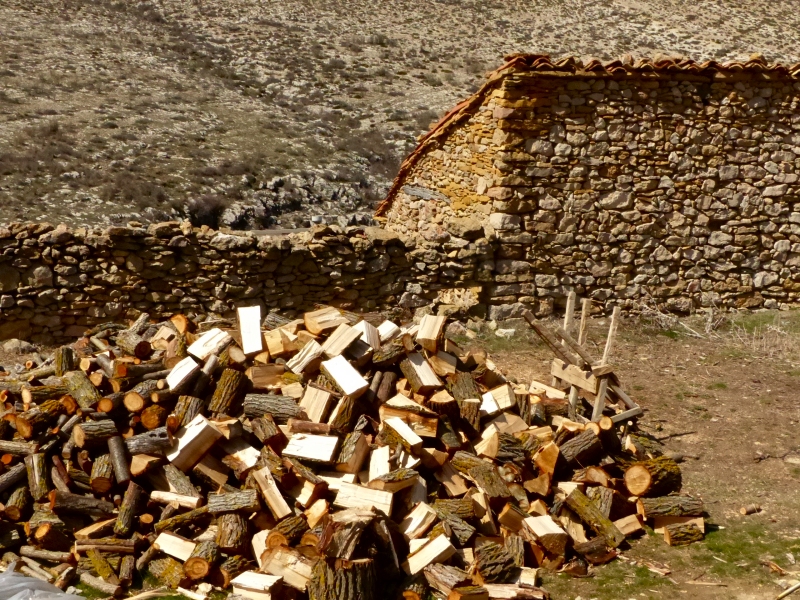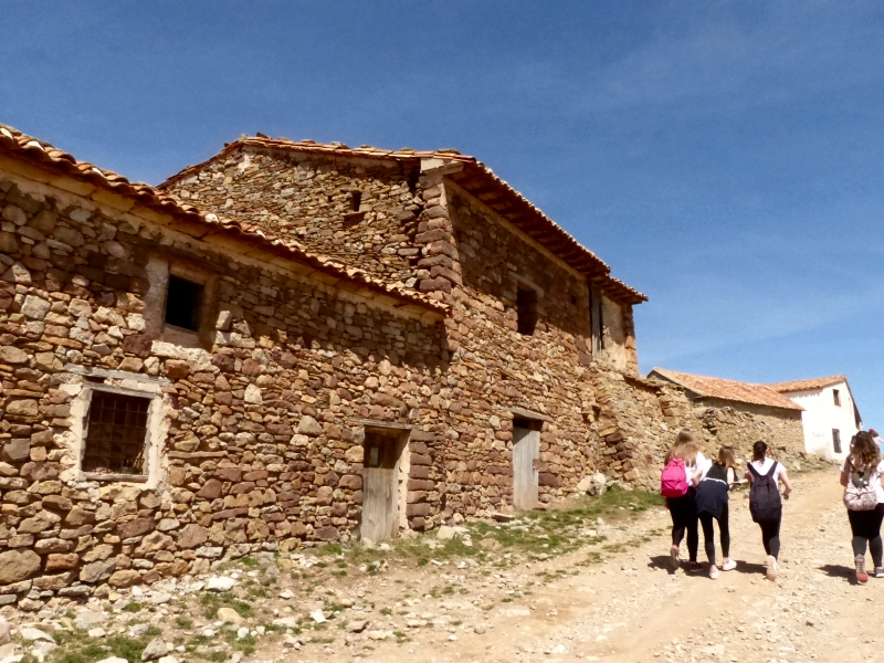 Y como ya era la hora de comer, nos acercamos al pueblo de Aguilar del Alfambra sin dejar de fijarnos en la arquitectura popular, otra manifestación del patrimonio cultural. Aquí se construye con piedras (areniscas violetas y calizas grises), madera y teja árabe, con un estilo muy singular.