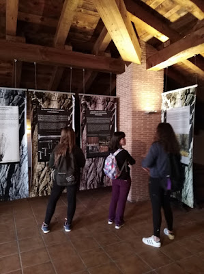 Comimos y descansamos en el bar. Y, aún sacamos un rato para acercarnos a ver el Aula de la Naturaleza del Chopo Cabecero, con sus paneles, con su bonito diorama y con el mapa de la zona.