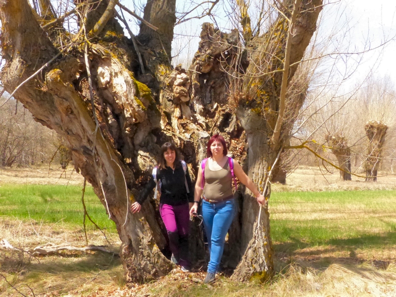 Ya faltaba poco. Llegamos hasta un panel con unas réplica de huellas de dinosaurio que hay en un monte cercano. Y, después de un corto descanso, llegamos hasta el Árbol Singular Chopo Cabecero del Remolinar, el que fue el candidato español en el concurso European Tree of the Year 2015 donde quedó clasificado en tercer puesto en función del enorme apoyo recibido en la votación de este concurso internacional. Y allí nos hicimos una foto de recuerdo.