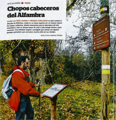 Entre ellas se incluye una ruta por el Parque Cultural del Chopo Cabecero del Alto Alfambra: el paseo entre Jorcas y Aguilar del Alfambra. Un precioso artículo de cuatro páginas elaborado por Eduardo Viñuales.