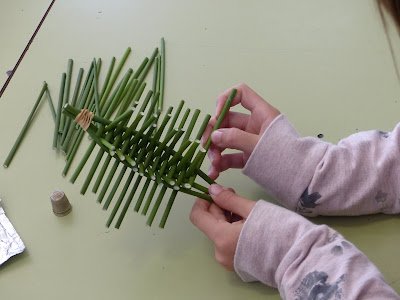 y como tenían muchas ganas de emplear los dedales y las agujas construyeron varios adornos con hojas de junco …