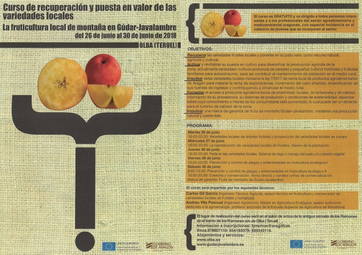 Entre los días 26 y 30 de junio se celebrará en Olba un curso formativo sobre recuperación y puesta en valor de variedades locales de árboles frutales bajo el título «La fruticultura local de montaña en Gúdar-Javalambre«.