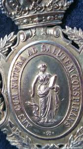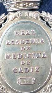 Medalla de la Real Academia de Medicina y Cirugía de Cádiz. Siglo XIX. Anverso y reverso. Ejemplar isabelino en plata.