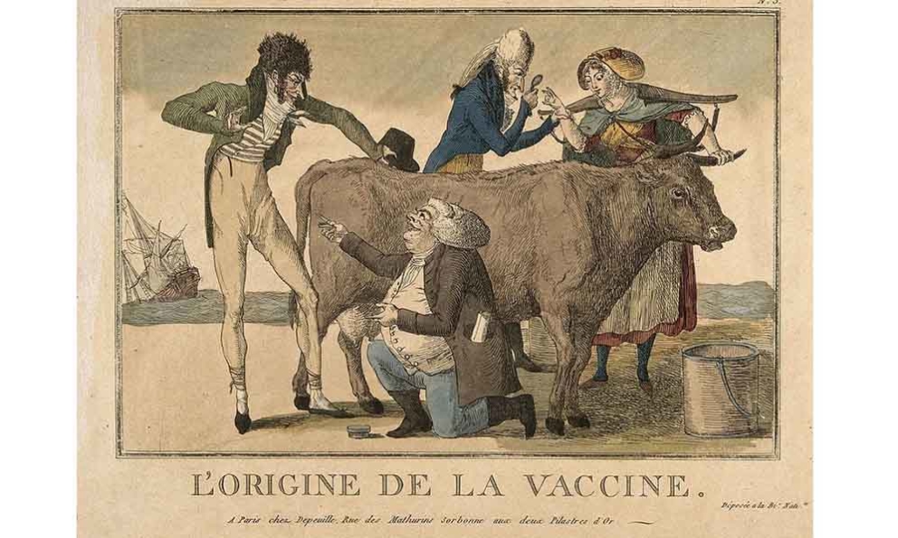 | El origen de la vacuna. https://www.biotechmagazine.es/reportajes-biotech/ El uso de la vacuna. Grabado de la Biblioteca Nacional de París. Foto: Institución Fernán González |