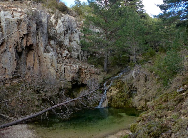 La formación de tobas calcáreas sobre salientes del cauce ha creado una serie de pequeñas cascadas y una poza que, esa tarde, lucía espléndida sus cristalinas aguas.