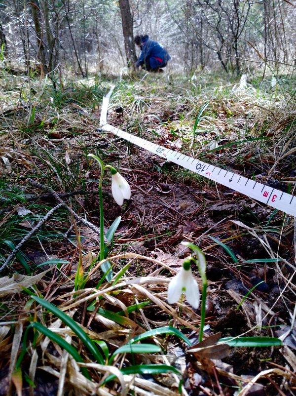 Contar los ejemplares reproductores era fácil. No tanto los ejemplares vegetativos. Y ya era difícil los juveniles, pues sus hojas se confundían con las de algunas gramíneas que formaban el estrato herbáceo del sotobosque. Deme, pacientemente iba contándolas mientras que yo anotaba los datos en la ficha.