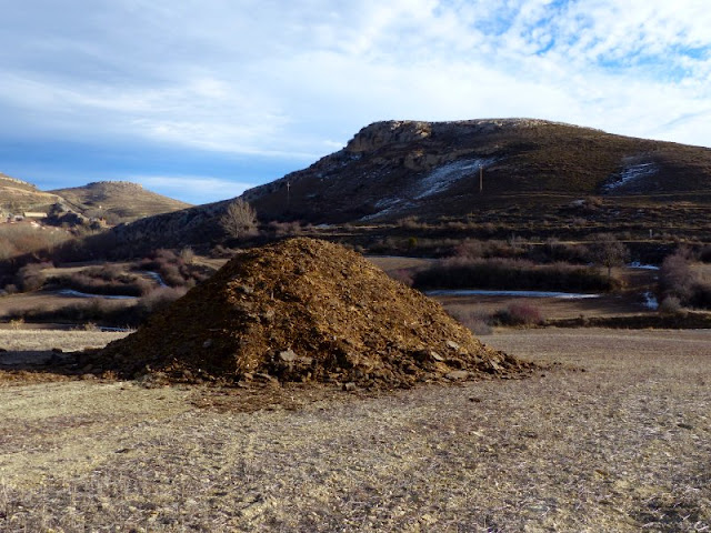 Dentro de unas semanas, conforme el agricultor-ganadero saque un rato, extenderá por el campo ya labrado y preparado con el cultivador el fiemo para envolverlo en la tierra y prepararla para la siembra en el próximo otoño. Como puede verse en este campo de Cedrillas.