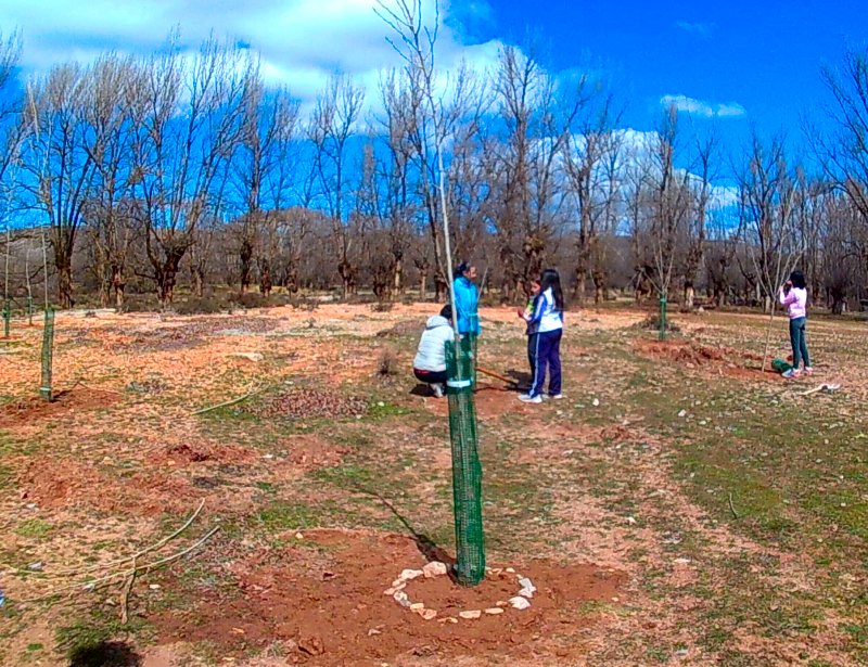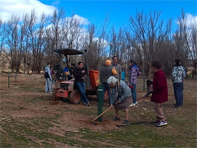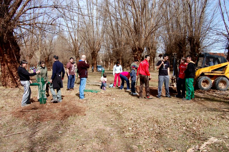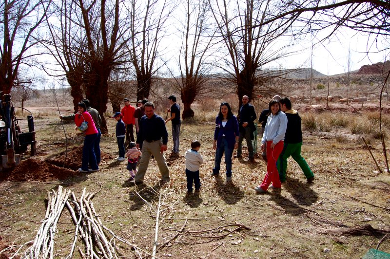 Este año, en su undécima edición, es un poco especial. Es especial porque no se van a plantar árboles. Se van a podar a los jóvenes chopos para hacerlos cabeceros. Es la poda de formación. Cortando la rama principal, se favorece el crecimiento de las ramillas laterales que, con el tiempo, se convertirán en las futuras vigas mientras el tronco se sigue engrosando. Esta tarea la realizarán unas personas experimentadas. Los demás colaboraremos picando alrededor de los arbolicos para quitar las hierbas que compiten por el agua, en estos primeros años, tan importantes para su supervivencia. Y, con una cuba, se regarán todos ellos, dándoles una ayuda por si la primavera viene seca.