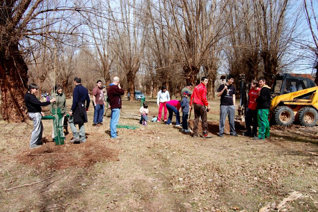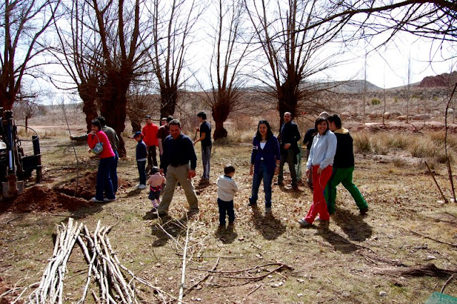 Desde hace diez años la Asociación Cultural Dinosaurio de Galve viene celebrando el Día del Árbol. Armados con legonas y con mucho entusiasmo, niños y mayores plantan en algún fin de semana del final del largo invierno varias docenas de chopos a lo largo de la ribera del Alfambra a su paso por la localidad.