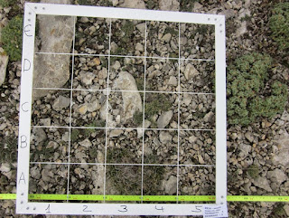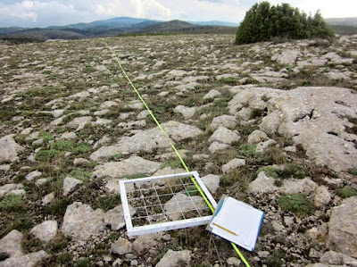 … en los que a intervalos de 50 cm. estudiamos e identificamos a nivel de individuo las poblaciones localizadas dentro de un cuadrado de 50 cm. de lado.