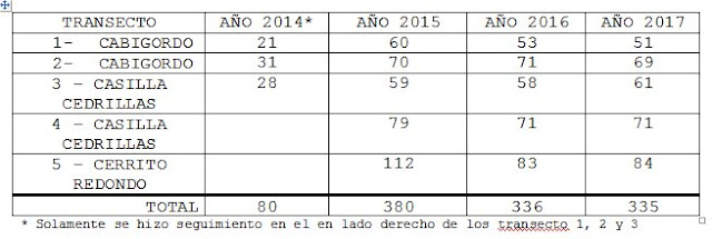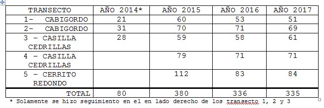 En relación a los cinco transectos que controlamos desde el año 2014, mediante trazados lineales de 50 metros …