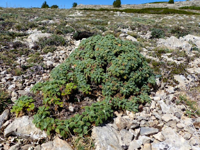 · En todos los casos, pese a nuestra falta de formación botánica y a falta de confirmación, nos atrevemos a afirmar que se localiza en comunidades donde es acompañada de: Thymus godayanus, Erinacea anthyllis, Anthyllis vulneraria, Paronchya kapela, Sedum album, Potentilla cinerea, Carex humilis, Festuca hyztrix, Koeleria vallesiana, Helianthemum apenninum, Helianthemum canum y Odontitis longiflora.